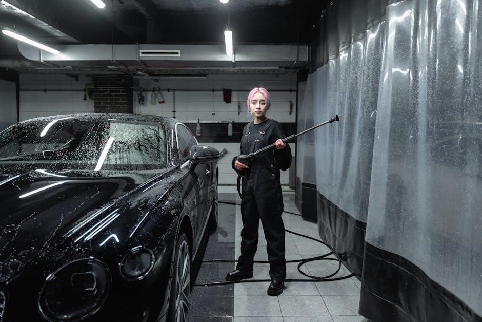 The manual contains detailed diagrams, troubleshooting tips, and safety guidelines tailored to your exact model. Always consult the manual before operation, paying close attention to recommended pressures, nozzle usage, and maintenance schedules. Ignoring the manual can lead to damage or injury. Understanding your model’s specifications ensures safe and effective cleaning.